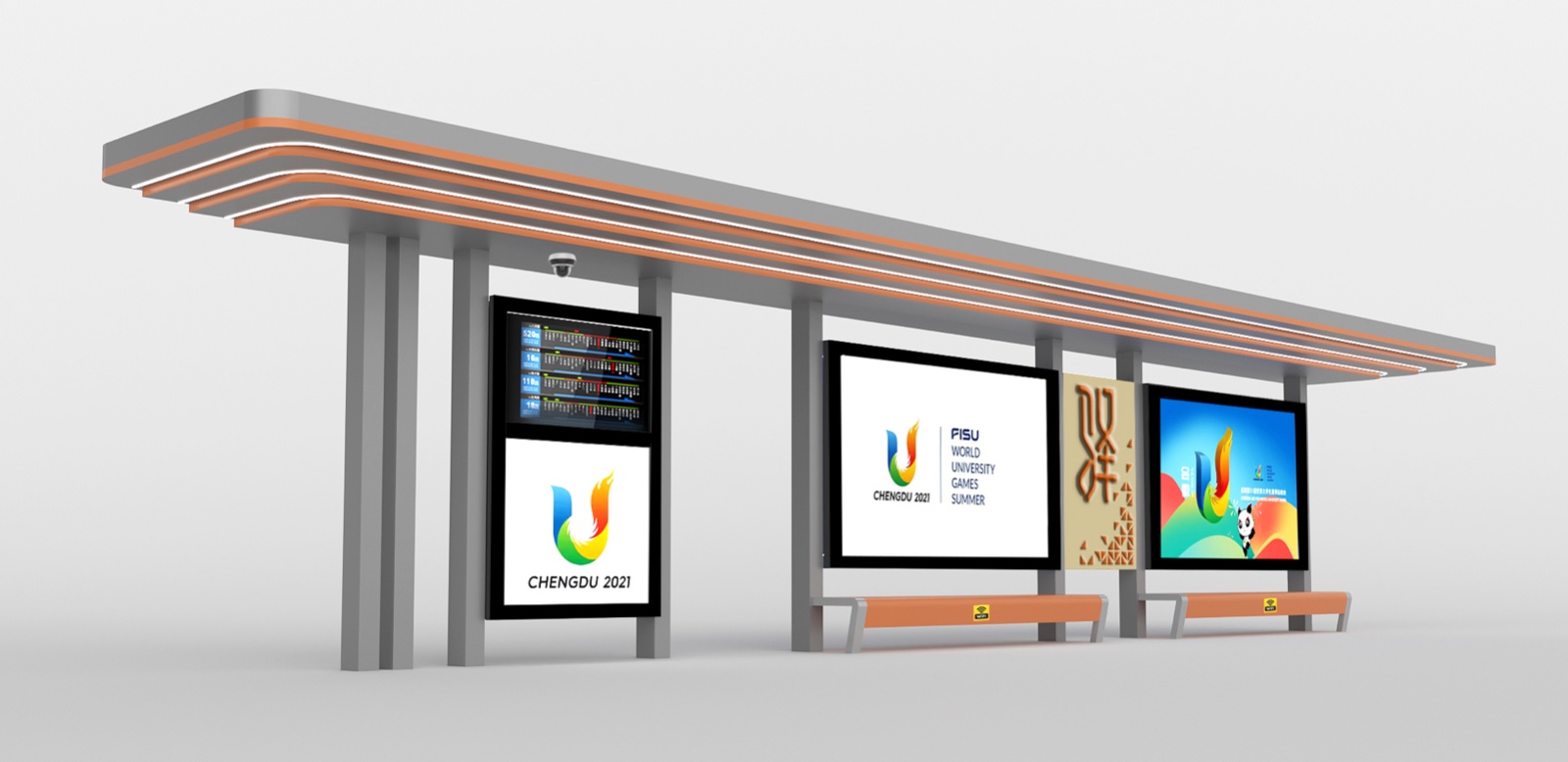 由我公司承建的四川蒲江朝陽大道、鶴山北路城市道路空間一體化改造項目--智慧公交站臺工程圓滿完工,造型呈一字形公交站亭,頂棚融入LED氛圍燈照明、每座站臺實現安全監控、電子報站、座凳充電、地域特色LOGO。
