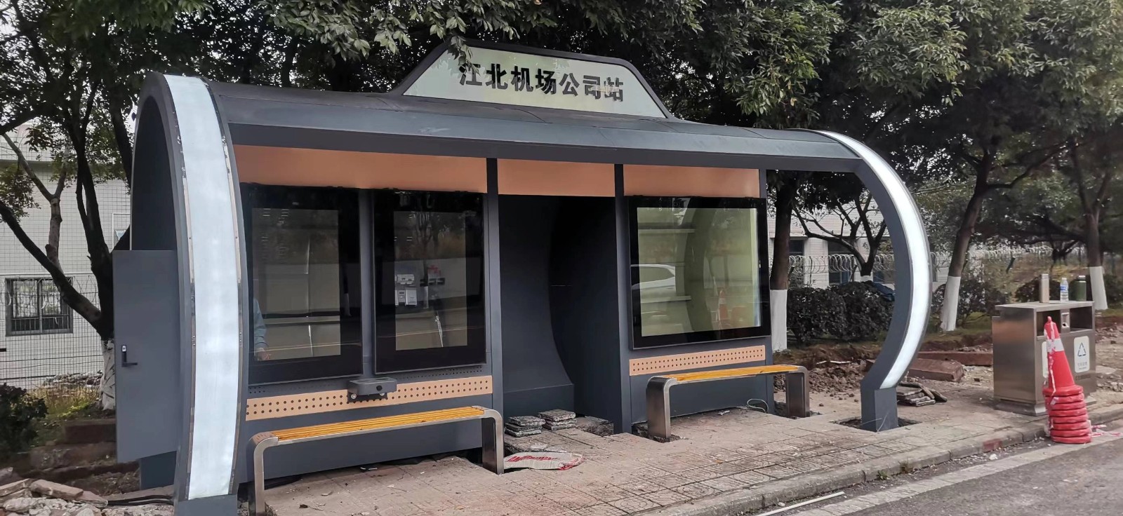 【鑫泰來候車亭】江北機(jī)場公交站臺(tái)二期工程完工